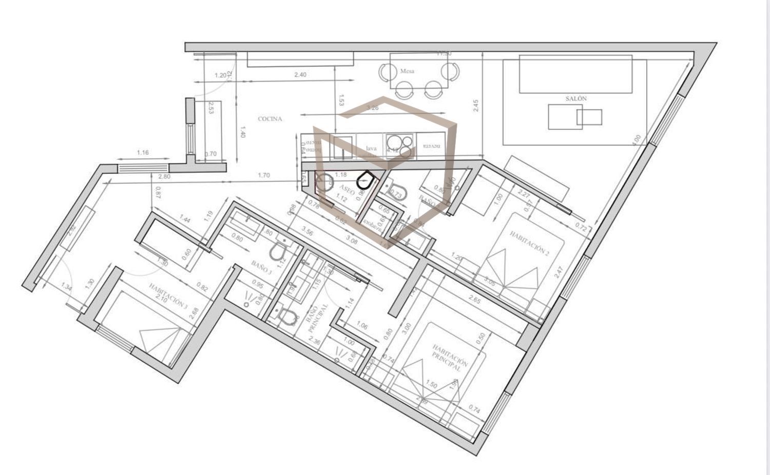 Flat for rent in Madrid, with 1,281 ft2, 3 rooms and 4 bathrooms, Lift and Furnished.