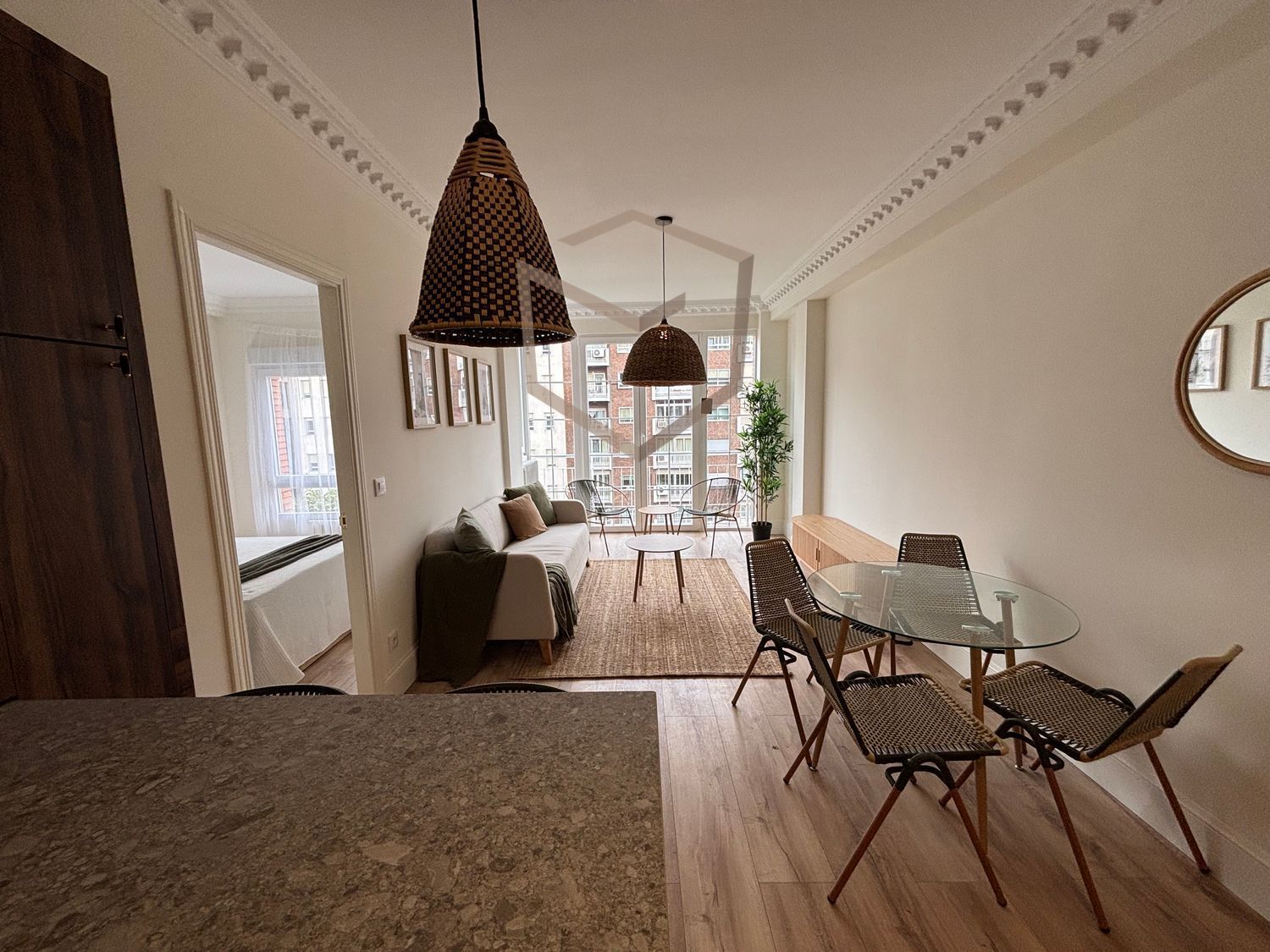 Flat for rent in Madrid, with 753 ft2, 2 rooms and 2 bathrooms, Lift, Furnished and Air conditioning.