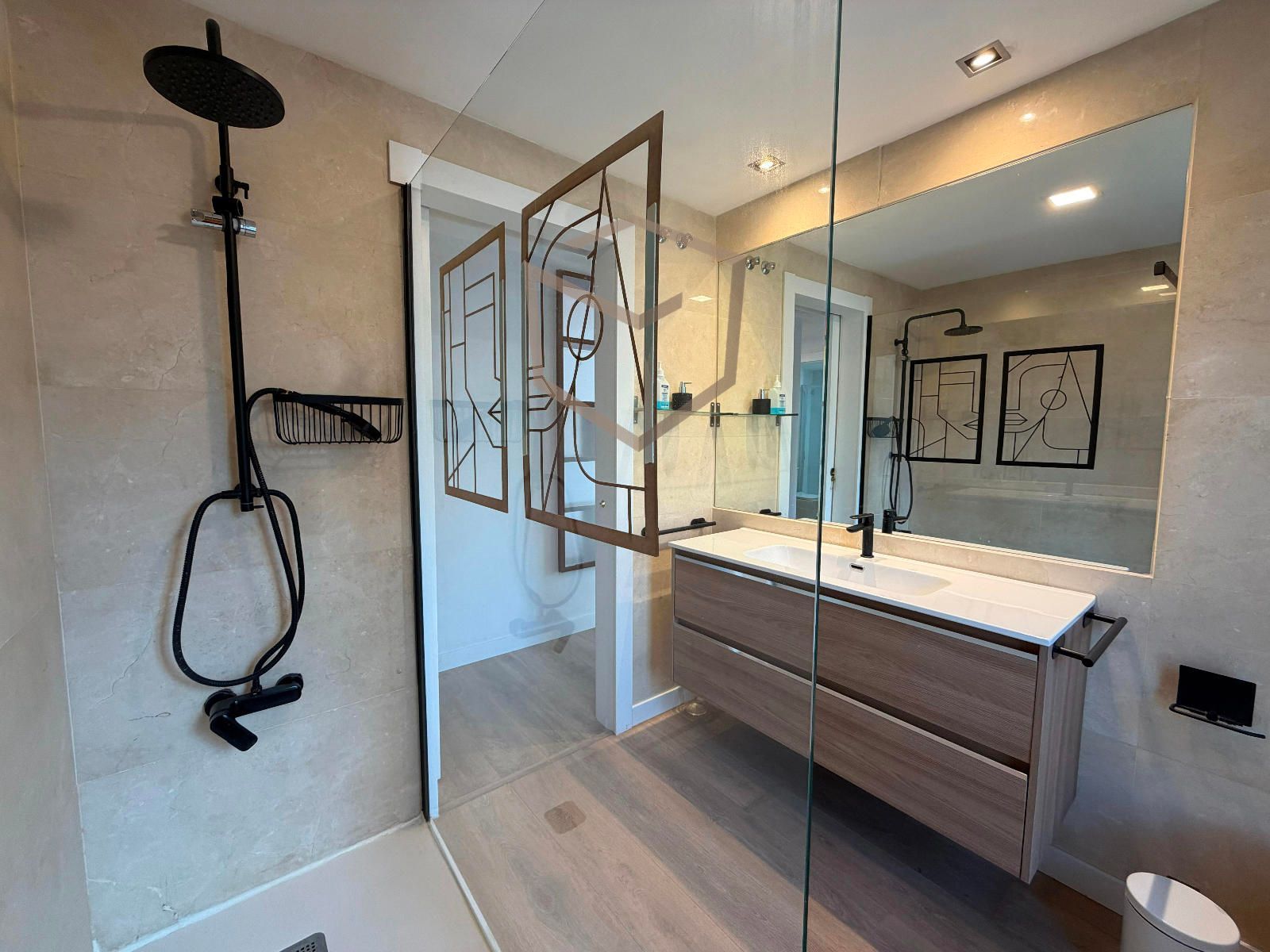 En la reforma integral se ha llevado a cabo la transformación de suelos y paredes, nueva carpintería interior toda lacada, carpintería exterior con doble cerramiento en las habitaciones, baños y cocina.