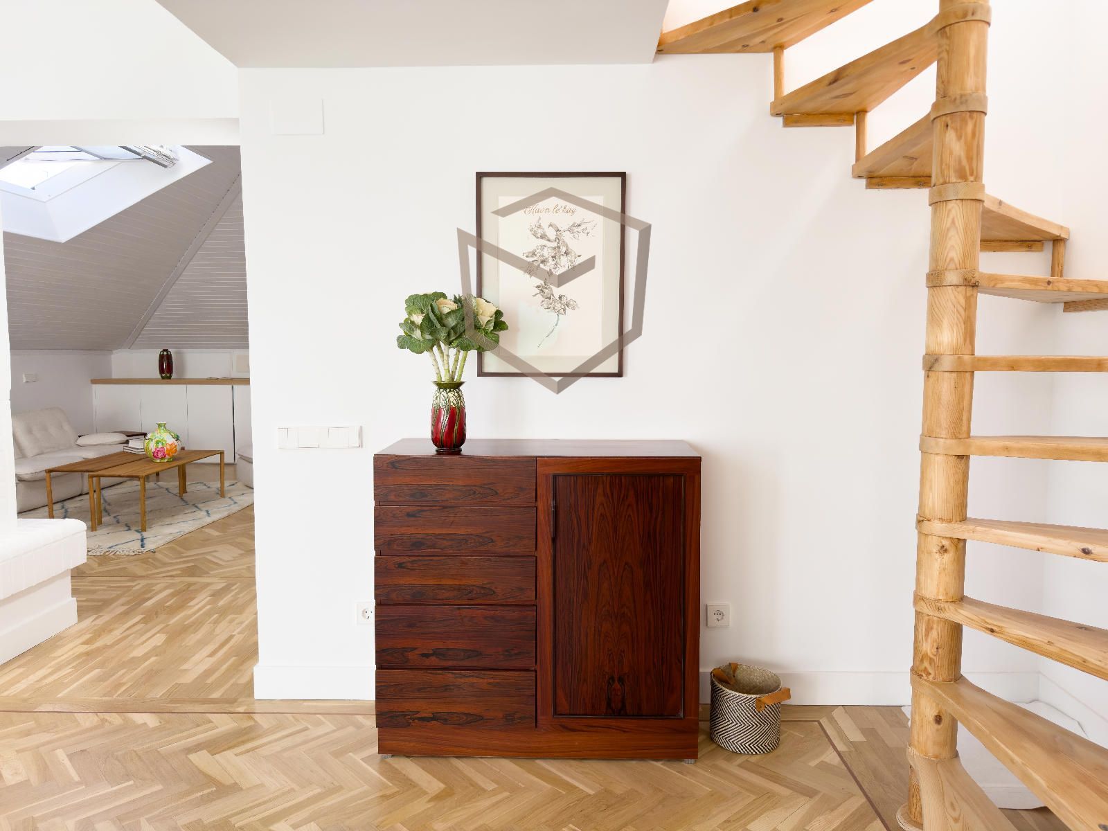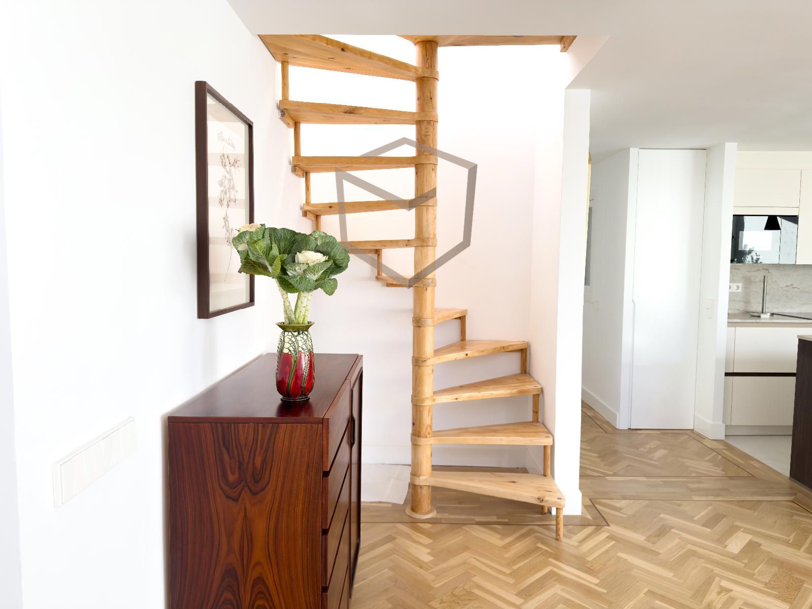 La zona privada consta de dos dormitorios en suite, uno en planta baja y otro en la planta superior que están comunicadas por escalera caracol.