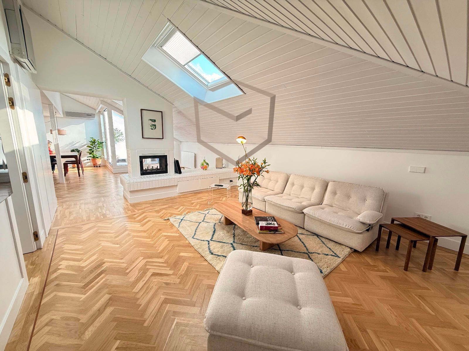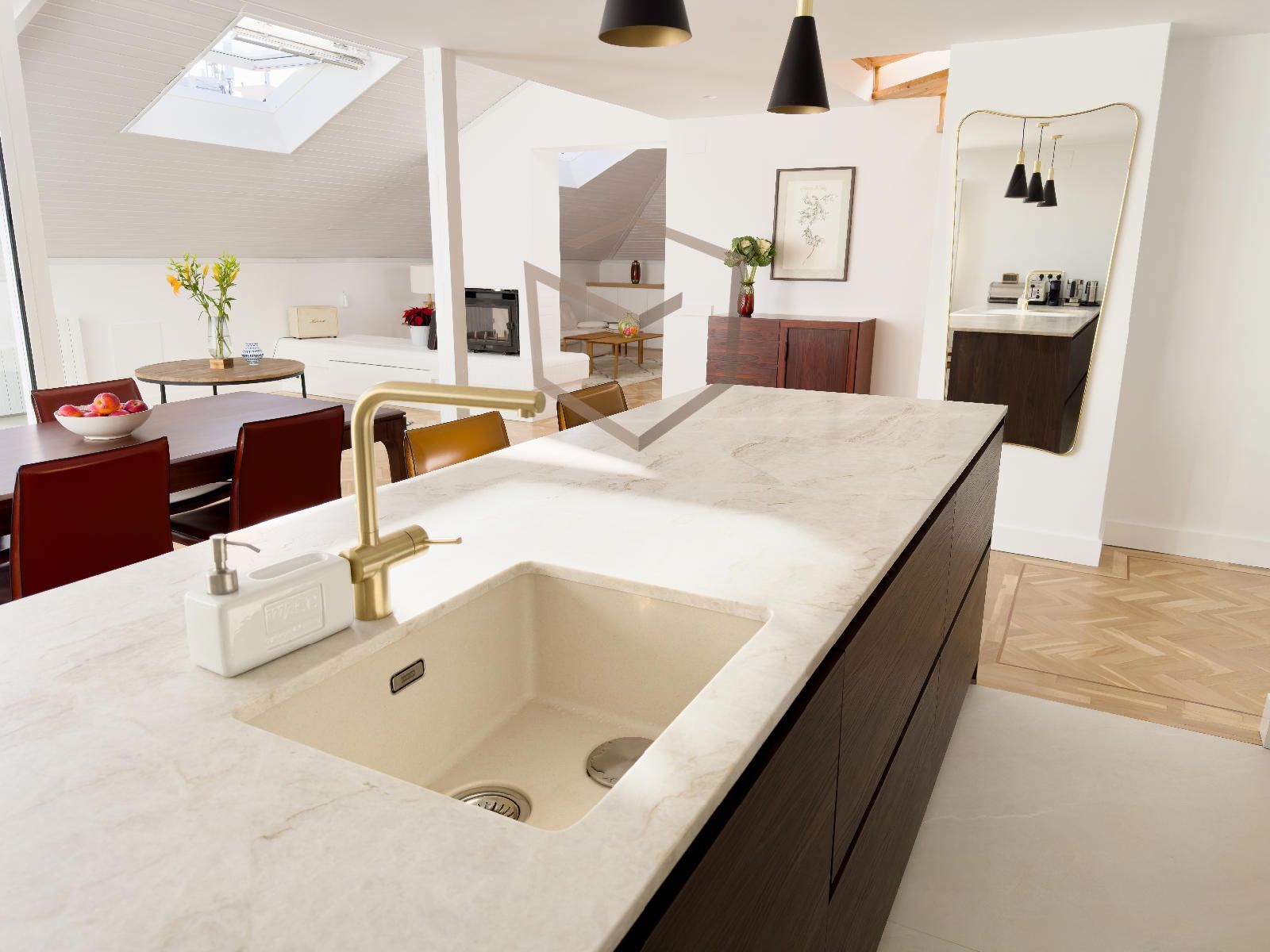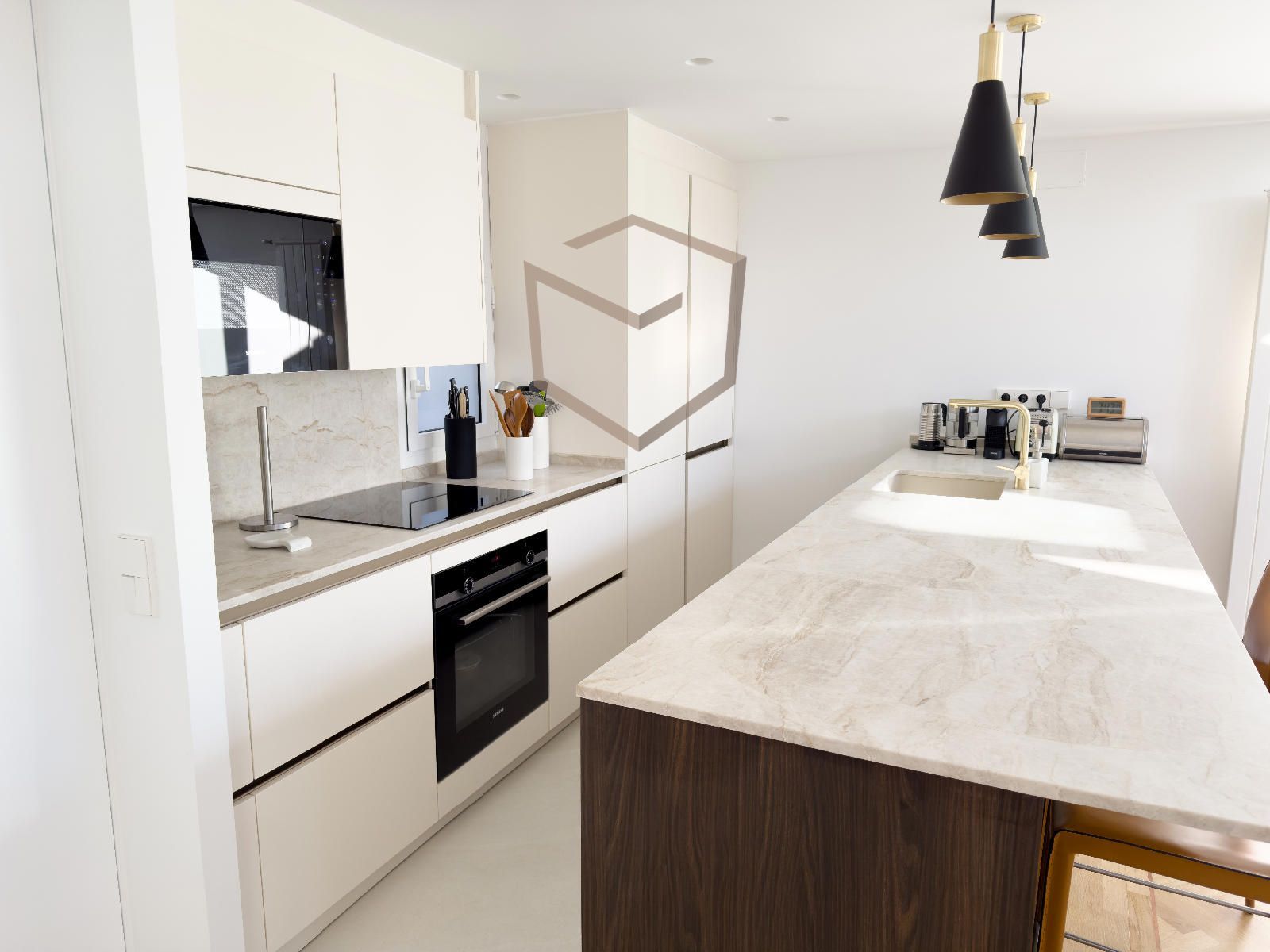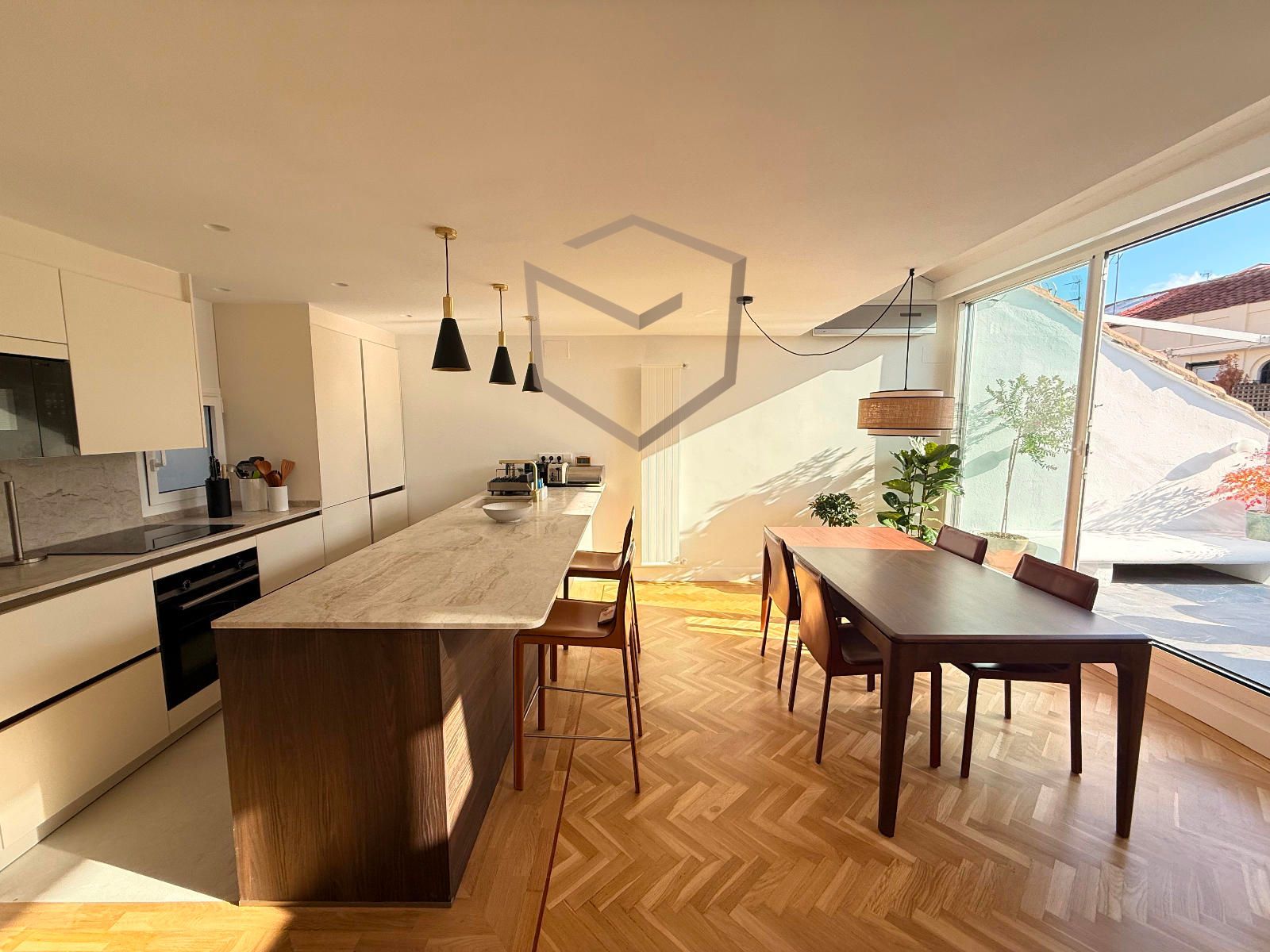 Cuenta con una amplia zona social dividida en 3 estancias, cocina integrada con isla con electrodomésticos de alta gama, completamente equipada, zona de comedor y salida a terraza.